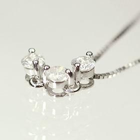 K18WG・ダイヤモンド0.2ct スリーストーンペンダント(ネックレス) スリーストーン ダイヤモンド ネックレス