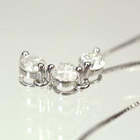 K18WG・ダイヤモンド0.5ct スリーストーンペンダント(ネックレス) スリーストーン ダイヤモンド ネックレス