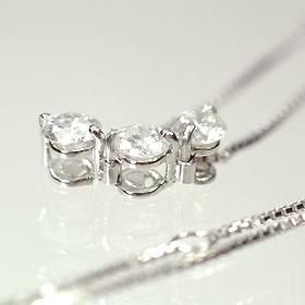 K18WG・ダイヤモンド0.5ct(鑑別書カード付) スリーストーンペンダント(ネックレス)