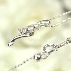 K18WG・ダイヤモンド0.25ct スリーストーンペンダント(ネックレス)