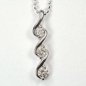 K18WG・ダイヤモンド0.3ct スリーストーンペンダント(ネックレス)