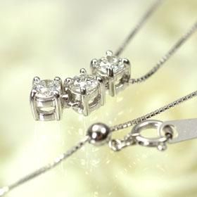 プラチナ・ダイヤモンド0.5ct(Hカラー・SI2・GOOD・鑑定ソーティング付) スリーストーンペンダント(ネックレス)