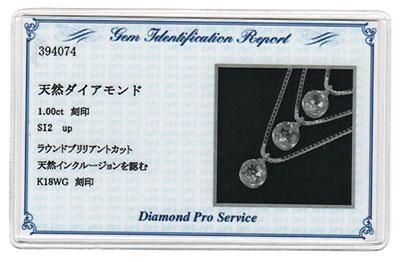 K18WG・ダイヤモンド1.0ct(SIクラス・鑑別書カード付) 3ストーン3連ペンダント(ネックレス)