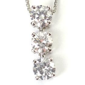 プラチナ・ダイヤモンド1.0ct(Hカラー・SI・GOOD・鑑定書付) スリーストーンペンダント(ネックレス)