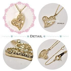 K10YG・ダイヤモンド0.01ct 透かしハートペンダント(ネックレス)
