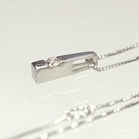 K18WG・ダイヤモンド0.05ct スティックペンダント(ネックレス)