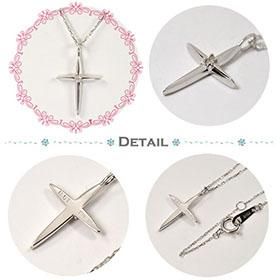 人気のクロスペンダントにひときわシャープなデザインが誕生しました。スッと流れるようなラインで先端が細くなったクロス。胸元をスッキリ見せてくれるそんなデザインです。クロスセンターには0.01ctのダイヤモンドをセットして上質さをアピールしています