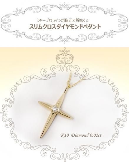 K10YG・ダイヤモンド0.01ct スリムクロスペンダント(ネックレス)