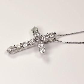 プラチナ・ダイヤモンド1.0ct クロスペンダント(ネックレス) ダイヤモンド ネックレス クロス 1カラット Pt900