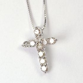 10石のテリのある天然ダイヤモンドを敷き詰めた人気のクロスデザインで、トップ・チェーンともにホワイトゴールドを使用したお買い得ペンダントです。多少の色味やバラツキがあっても天然ダイヤならではキラキラ感がございますので、ちょっとしたギフトや日常使いにもお勧めです。