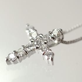 K10WG・ダイヤモンド0.2ct クロスペンダント(ネックレス) ダイヤモンド ネックレス クロス ホワイトゴールド