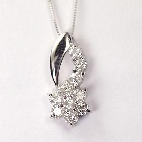 K10WG・ダイヤモンド0.5ct(SIクラス・鑑別書カード付) スウィートフラワーペンダント(ネックレス) スウィートテン ダイヤモンド ネックレス ホワイトゴールド