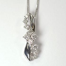 K18WG・ダイヤモンド0.3ct(SIクラス・鑑別書カード付) エレガント10ペンダント(ネックレス)