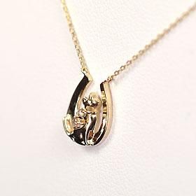 K10YG・ダイヤモンド0.01ct キャット・オン・ザ・ホースシューペンダント(ネックレス)