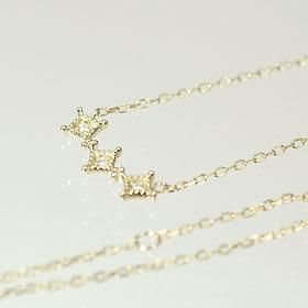 K10・ダイヤモンド0.01ct 3ストーンペンダント(ネックレス)