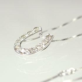 幸運のモチーフでもある馬蹄に10石(計0.2ct)のダイヤを敷き詰め、トップ・チェーンともにホワイトゴールドを使用したお買い得ペンダントです。多少の色味やバラツキがあっても天然ダイヤならではキラキラ感がございますので、ちょっとしたギフトや日常使いにもお勧めです。