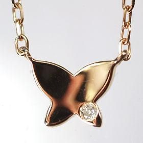 K10PG・ダイヤモンド0.01ct バタフライペンダント(ネックレス)