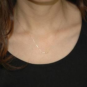 小振りながらテリのある3石のダイヤが胸元で輝くピンクゴールドのペンダントネックレスです!ネックレスチェーンもトップ脇に固定ですので、知らない間に引き輪が前に来てしまう心配もありません。
