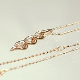 K10PG・ダイヤモンド0.1ct スリーストーンペンダント(ネックレス)