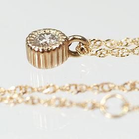 テリのあるダイヤを使用した、華奢で女性らしい一粒ペンダント!今や1つは持っていたい大人の女性の定番品ですね。石座のデザインがクラシカルな雰囲気で、とても上品に仕上がっています。
