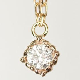 テリのあるダイヤを使用した、華奢で女性らしい一粒ペンダント!今や1つは持っていたい大人の女性の定番品ですね。石座側面のデザイン性が高く、とても可愛らしい作りになっております!