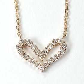 超可愛いデザインのオープンハートです!ダイヤも若干色味がありますがテリのダイヤを22石敷き詰めており、胸元でダイヤならではのキラキラとした輝きを放つ可愛いペンダントに仕上がっております。