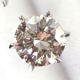 あこがれの1カラットのスタッドです!片側0.5ctはかなりの迫力!画像ではカメラの感度でかなり色味を拾ってしまっておりますが、実際はフェイント〜ベリーライト程度のカラーで、テリ(輝き)は抜群です。当店でも無色透明クラスのダイヤもラインナップさせていただいておりますが、どれだけ頑張ってもこの3倍の価格になることを考えると、本音で申し上げて、このレベルでこの価格はかなりのお買い得だと自信を持ってお薦めさせていただきます。