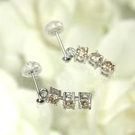 テリのあるブラウンダイヤを使用したスリーストーンピアスです。テリとカラットがあって低価格という条件の場合、割安感のあるブラウンがお薦めですね。