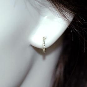 片側7石で0.1ct(合計0.2ct)とはいえ、前面に集中してダイヤをセットしておりますので、正面から見た感じはその倍のカラット数のフルエタニティーと同様の存在感があります。ポストも人気の中折れ式を採用しており、一押しのピアスとなっております。