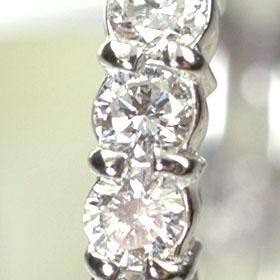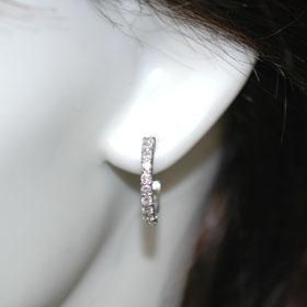 色味もなくテリ(輝き)の強いダイヤを使用した片側10石0.5ct(合計20石で1.0ct)のハーフエタニティーピアスです。前面に10石使用しておりますので、前から見た感覚では、計2カラットのフルエタニティーと同等のボリューム感です。エタニティーの場合は特に、特価商品をご購入されて「茶色いダイヤが混ざっていて後悔した」とか相談を受けますが、このクラスになるとそういった色のバラツキもなく文句なしのダイヤを使用しておりますので、ご安心して末永くご使用頂けると存じます。ピアスのほうも強度を重視し、中折れ式を採用しております。