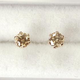 定番のティファニー爪(6本爪)のスタッドピアスで、地金には18金ピンクゴールドを、ダイヤはピンクゴールドと相性の良いシャンパンカラーのブラウンダイヤを片側0.05ct×2のトータル0.1ctセットした、小振りではありますが、普段着けにもお薦めの可愛いいピアスです!