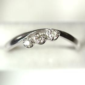 K10WG ダイヤモンド0.1ct(SIクラス・鑑別書カード付) スリーストーンリング トリロジー
