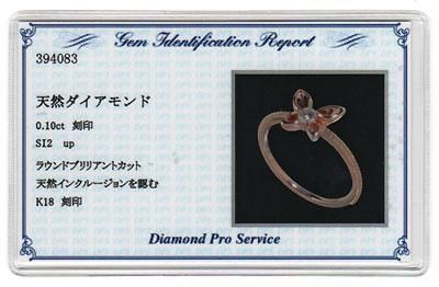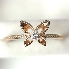 K18PG・ダイヤモンド0.1ct(SIクラス・鑑別書カード付) バタフライリング
