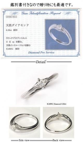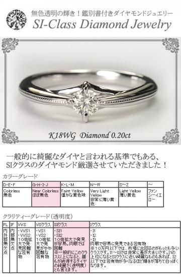K18WG・ダイヤモンド0.2ct(Hカラー・SIクラス・鑑別書カード付) ソリティアリング