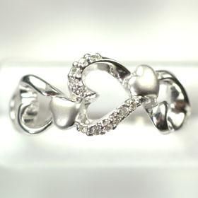 ハートが重なるキュートなデザインのダイヤリングです。ジガネもたっぷり!幅も広めで存在感もたっぷり!メインのダイヤを敷き詰めた横の左右はマット加工(つや消し)も施すという凝り具合!