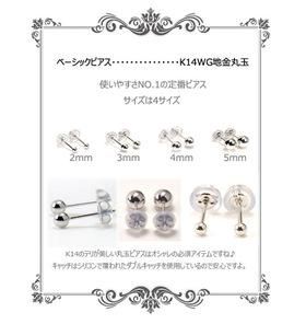 K14WG・地金 丸玉ピアス 2mm(日本製)
