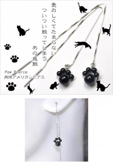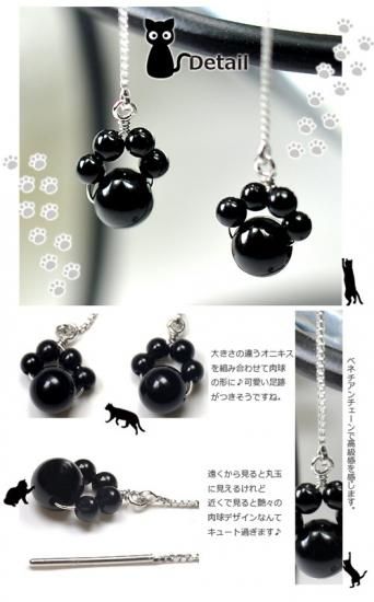 K10WG・オニキス 愛くるしい猫の肉球デザインアメリカンピアス
