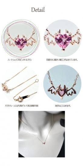 K10PG・ピンクトルマリン 小悪魔デビルハートカットペンダント(ネックレス)