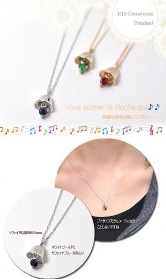 K10WG・サファイア ジェムストーンベルペンダント(ネックレス)