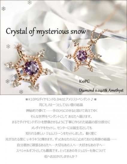 K10PG・ダイヤモンド0.04ct&アメジスト ジェムズスノーフレークペンダント (ネックレス)