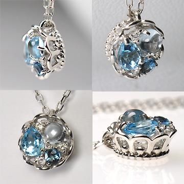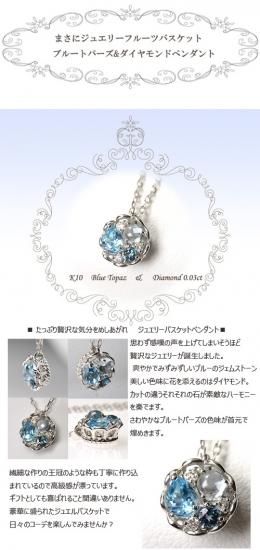 K10WG・ブルートパーズ&ダイヤモンド0.03ct ジュエルバスケットペンダント(ネックレス)