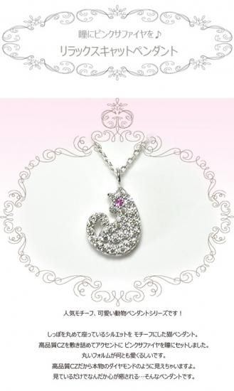 K10WG・ピンクサファイヤ リラックスキャットペンダント(ネックレス)