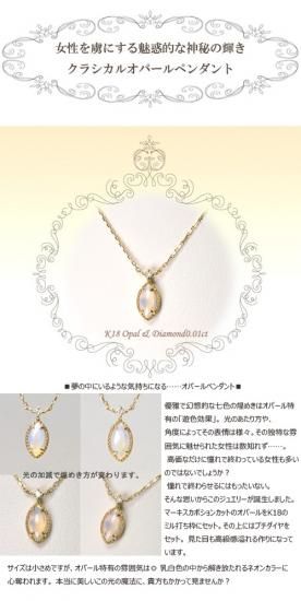 K18・オパール&ダイヤモンド0.01ct マーキスカボションカットペンダント(ネックレス)