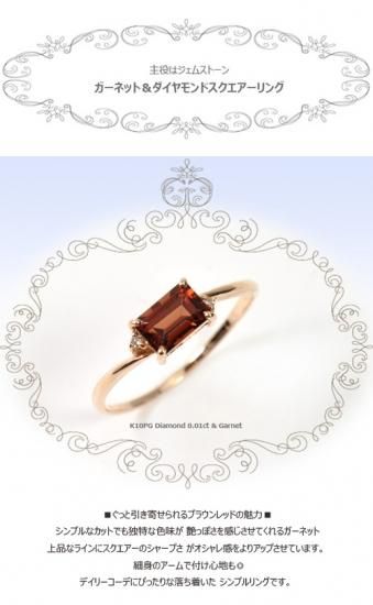 K10PG・ダイヤモンド0.01ct&ガーネット スクエアージェムストーンリング