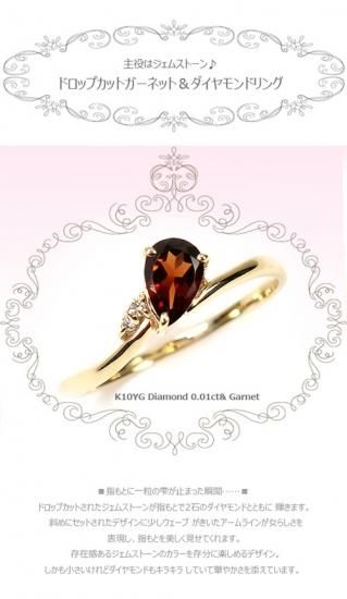 K10YG・ダイヤモンド0.01ct&ガーネット ドロップカットダブルダイヤリング