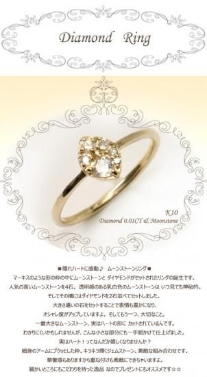 K10・ダイヤモンド0.01ct&ムーンストーン ハートインアーモンドリング
