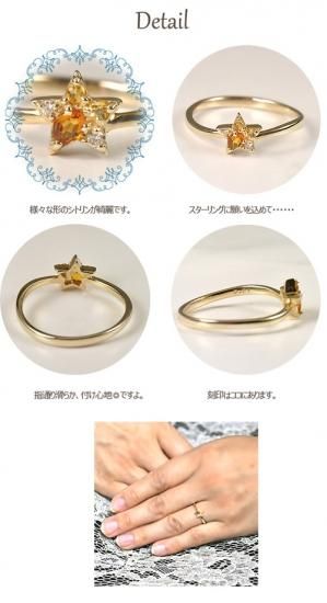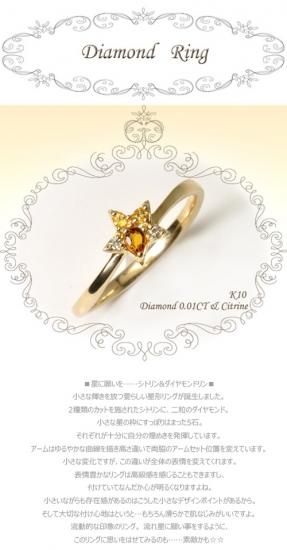 K10・ダイヤモンド0.01ct&シトリン スターシトリンリング