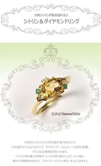 K18・ダイヤモンド0.02ct&シトリン クラシカルデザインリング