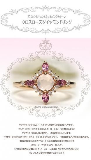 K18PG・ダイヤモンド0.10ct&ローズクォーツ&ピンクトルマリン ノーブルリング