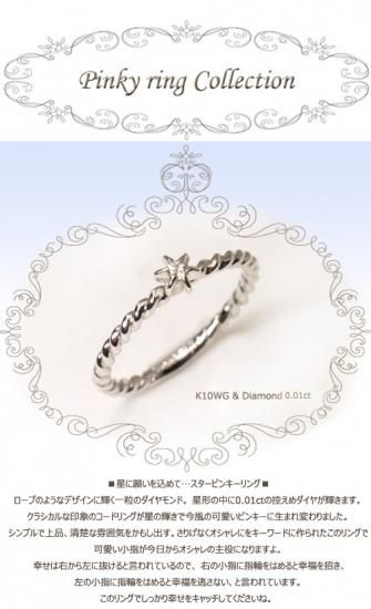 K10WG・ダイヤモンド0.01ct スターダイヤピンキーリング
